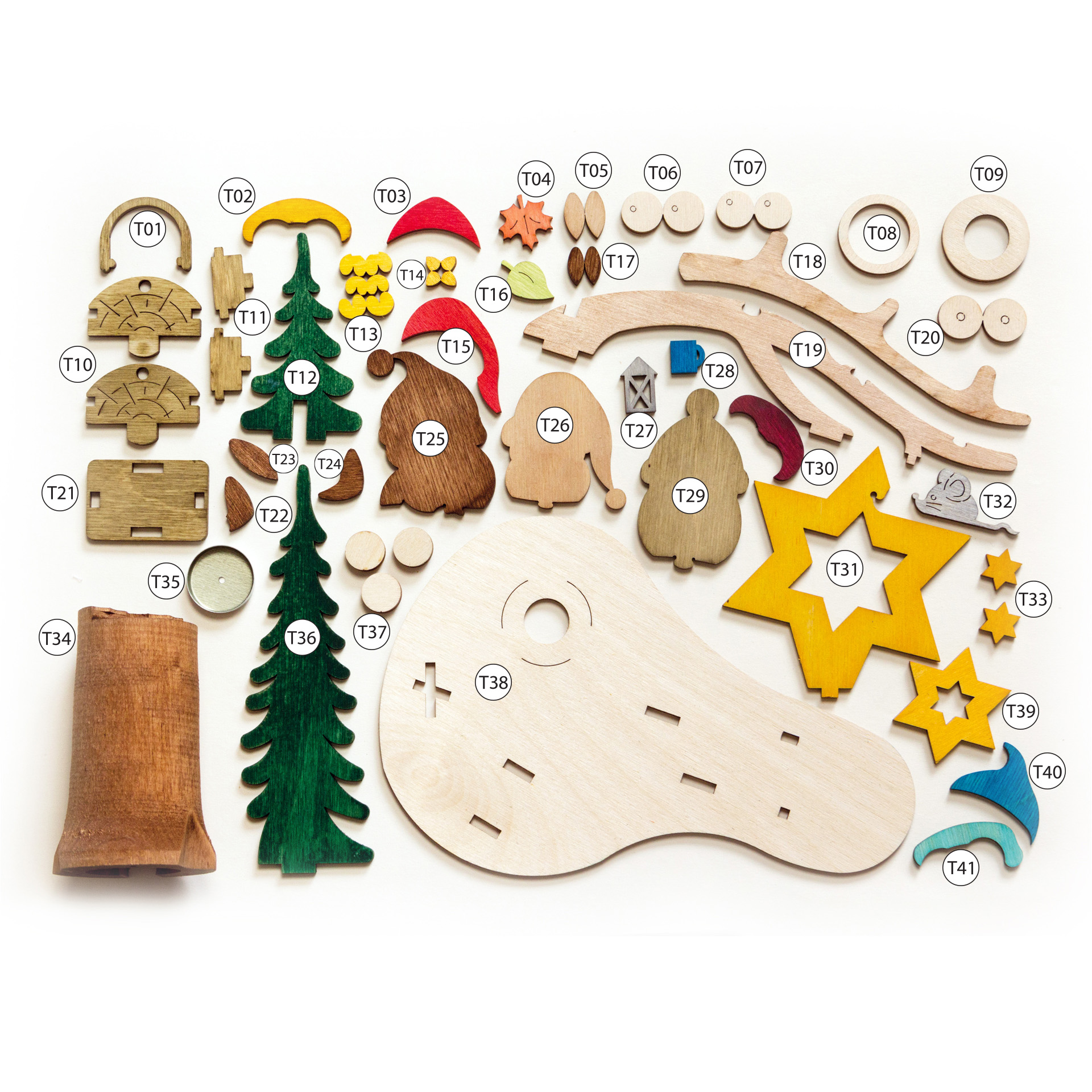 Das Fachgeschäft Volkskunst aus Seiffen präsentiert den Artikel Bastelset Rauchhaus Eulen 14 x 18cm der Marke Dregeno