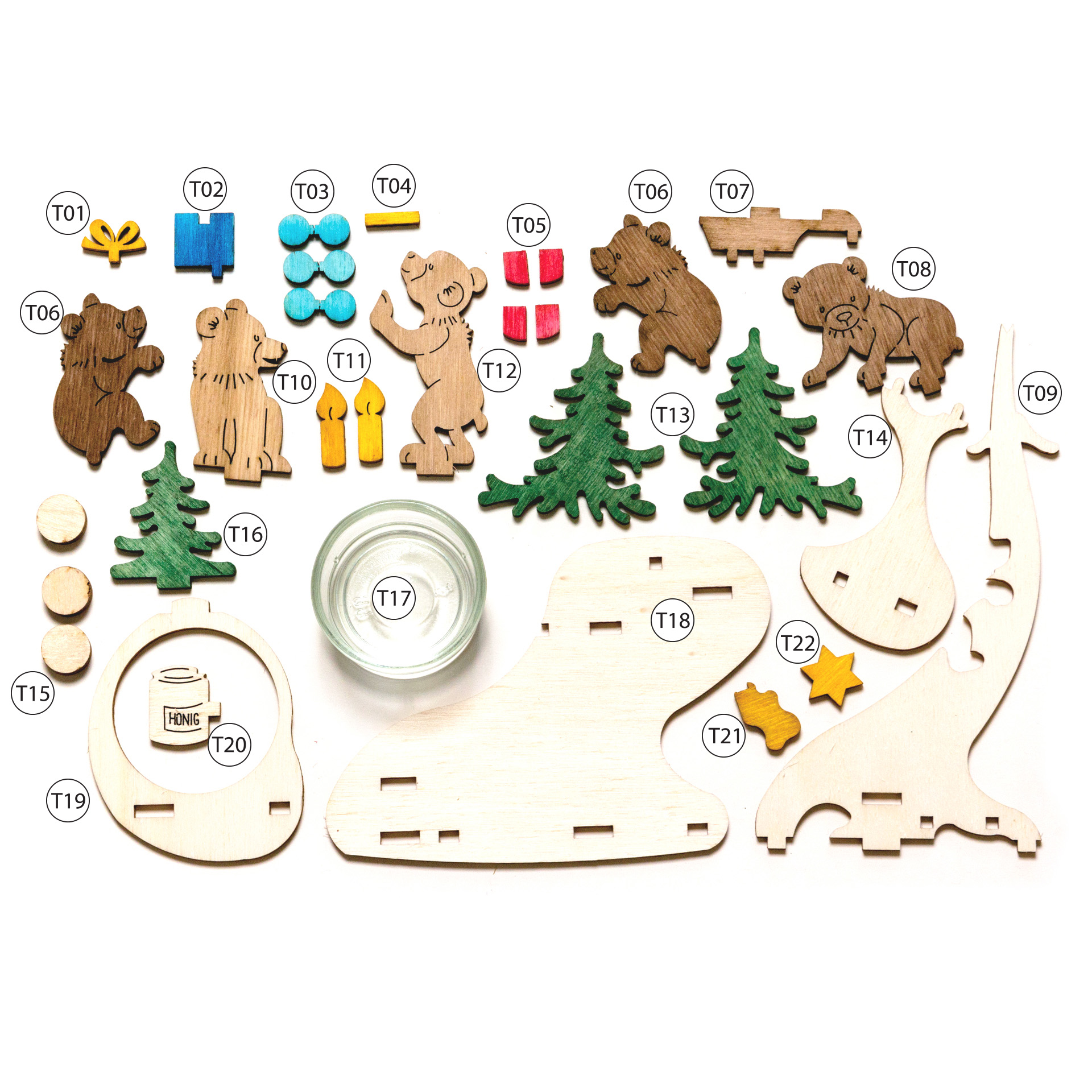 Das Fachgeschäft Volkskunst aus Seiffen präsentiert den Artikel Bastelset Teelichthalter Bären 12x 16cm der Marke Dregeno