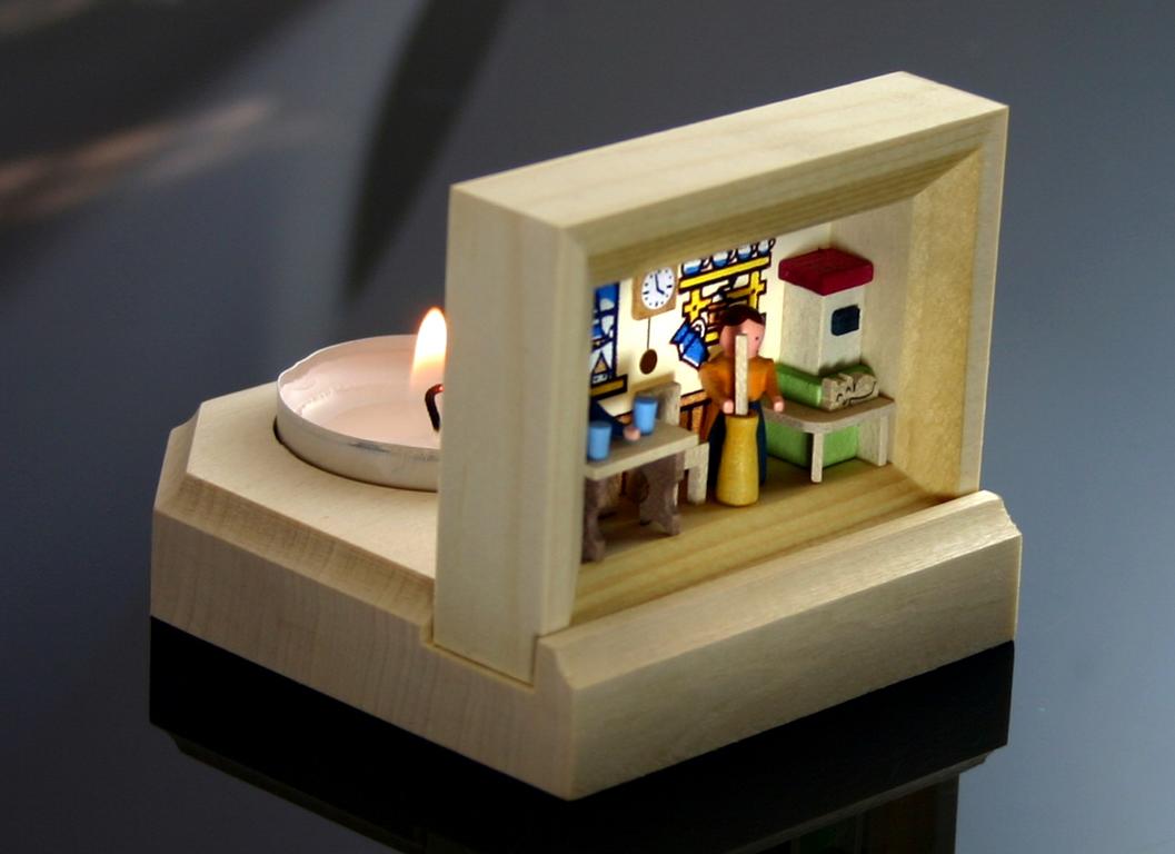 Das Fachgeschäft Volkskunst aus Seiffen präsentiert den Artikel Halter für Rähmchen mit Teelicht 9cm x 5cm x 7cm der Marke Stübelmacher Flath