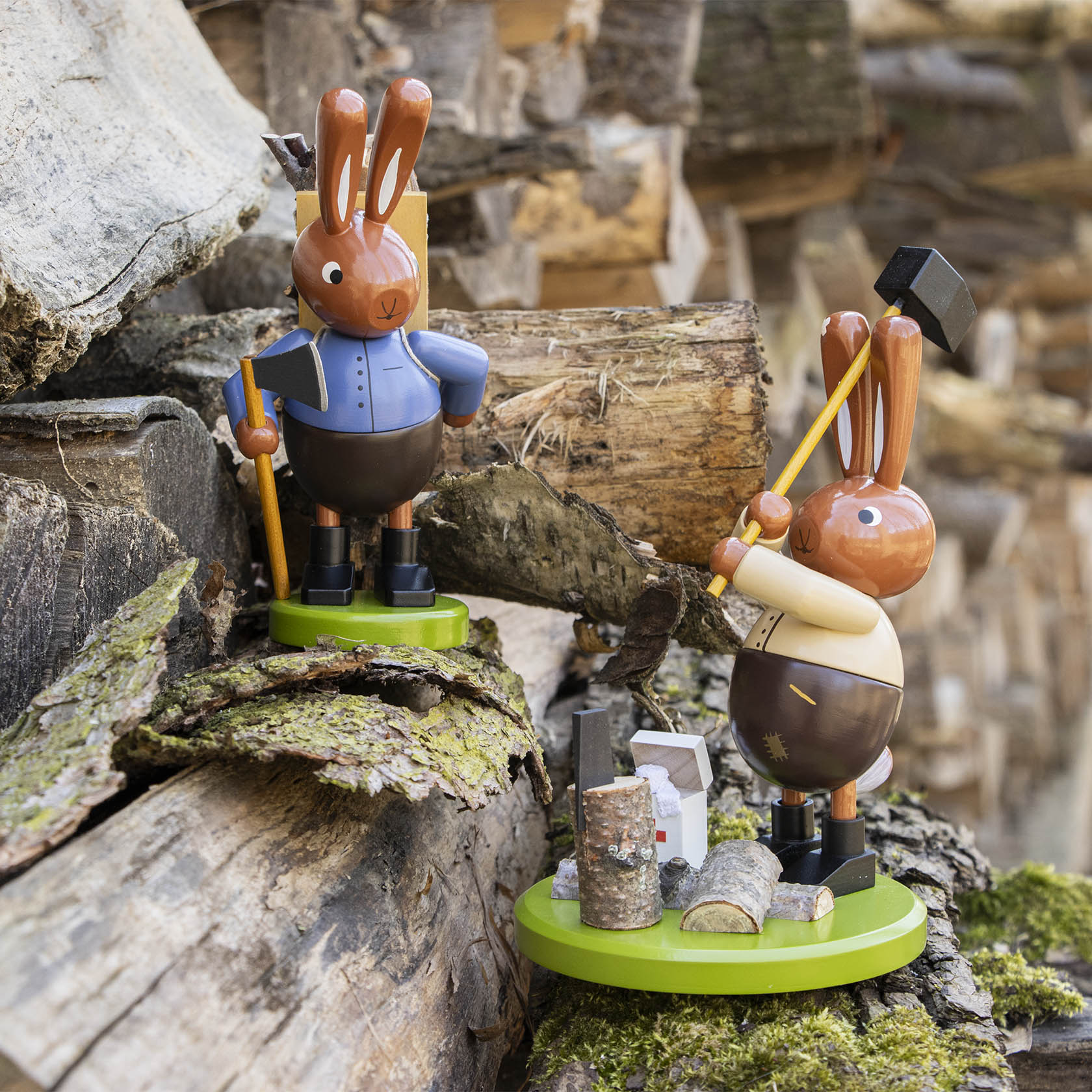 Das Fachgeschäft Volkskunst aus Seiffen präsentiert den Artikel Hase mit Holztrage, groß 18cm der Marke Dregeno