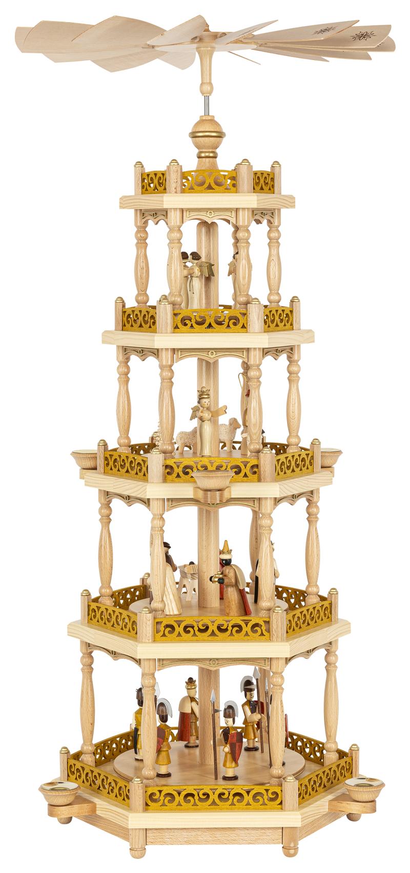 Pyramide Christi Geburt natur 4-stöckig 86 cm für Kerzen