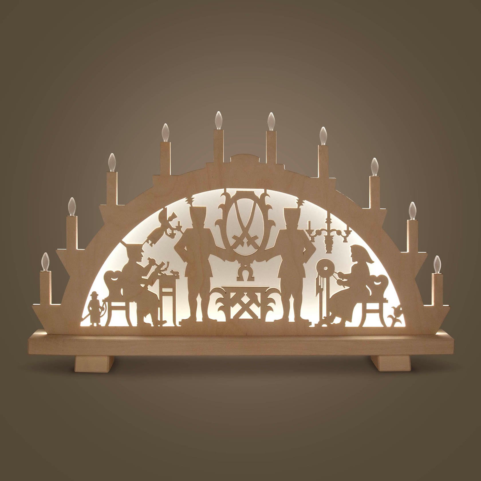 Schwibbogen SCH-L-ICHT Erzgebirgsmotiv mit LED-Beleuchtung Netzspannung 100-240V 37x64cm