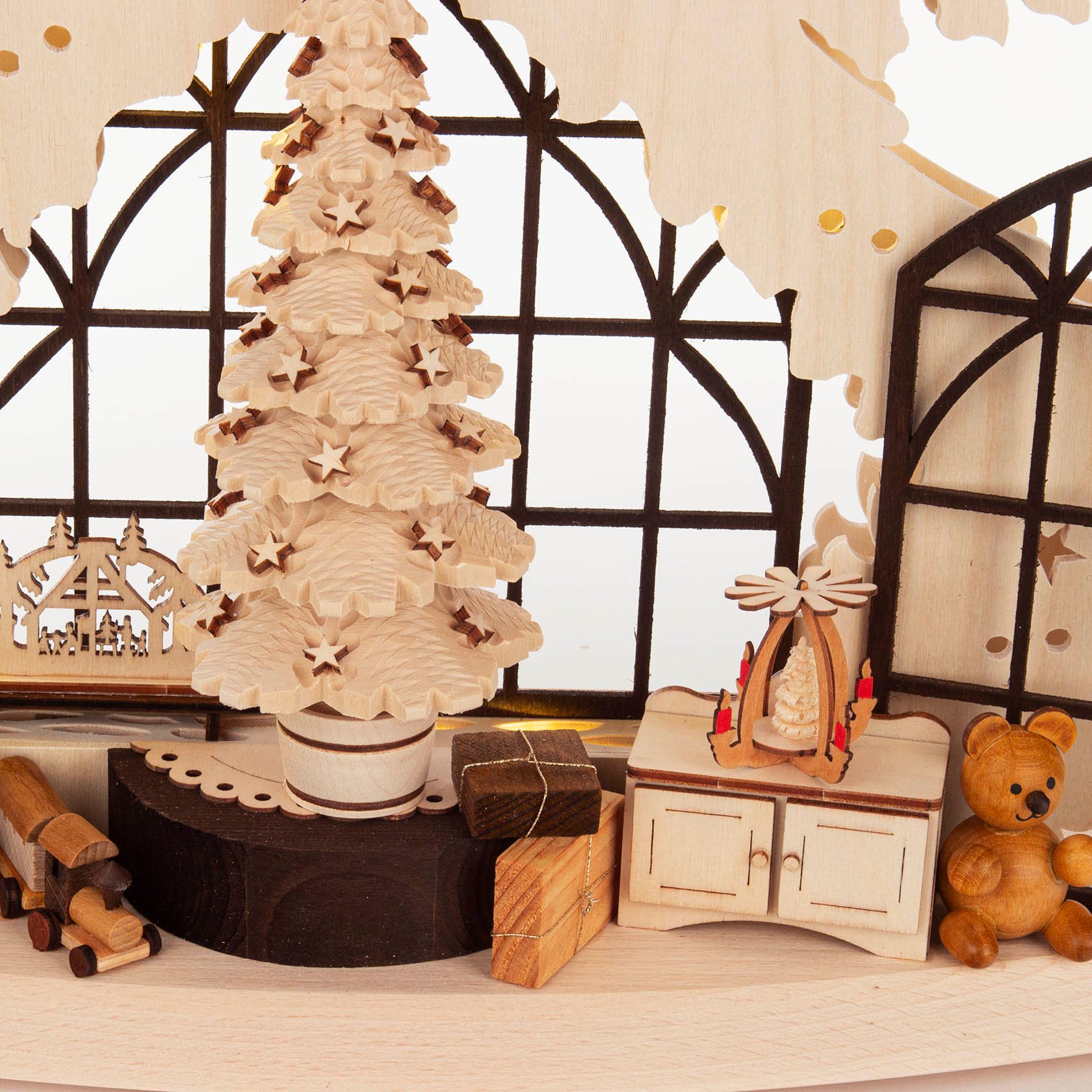 Schwibbogen Tanne Weihnachtsstube mit Fenster 70x39cm