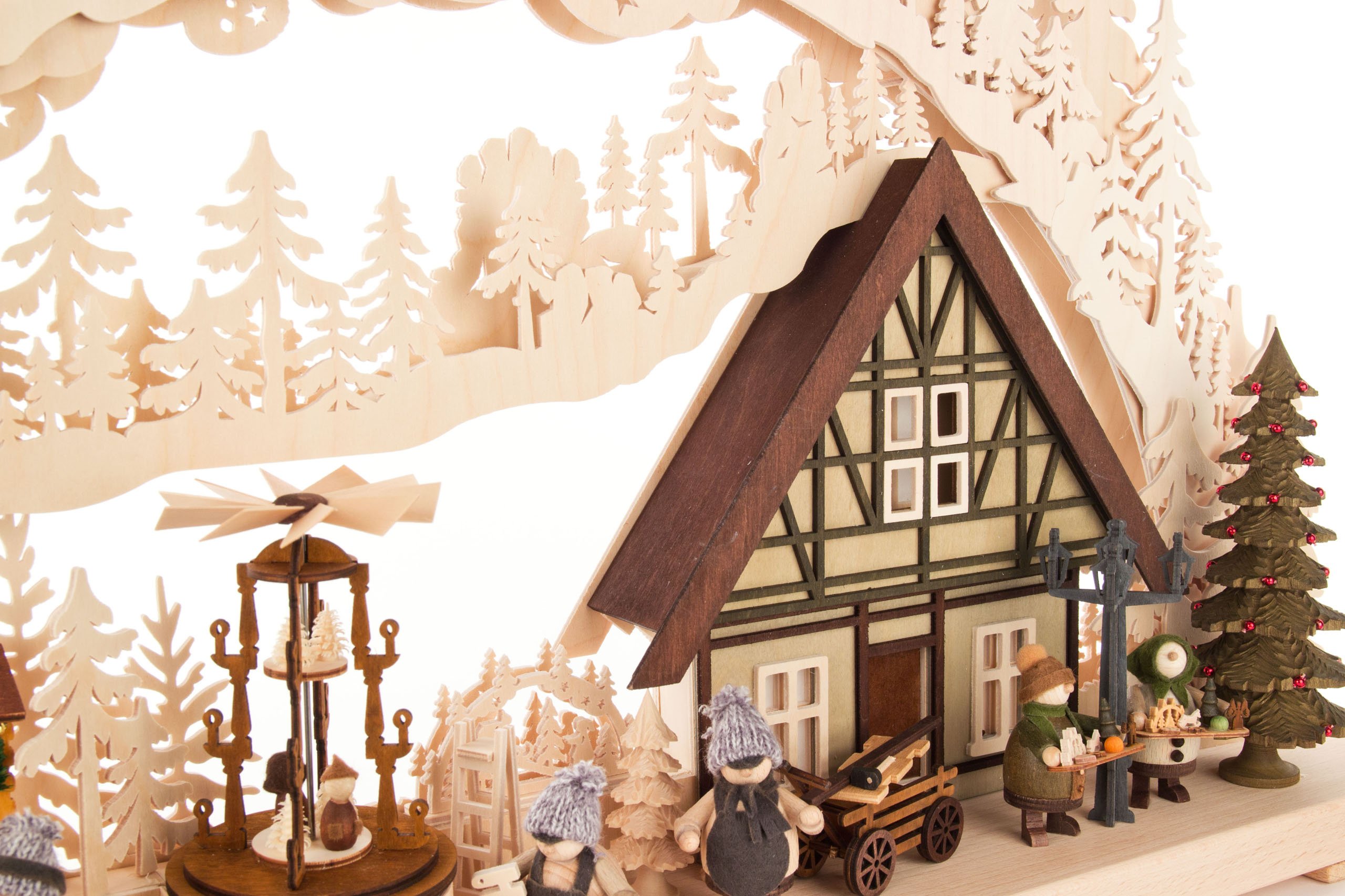 Schwibbogen Weihnachtsmarktbau groß, indirekt elektrisch beleuchtet 43x72cm