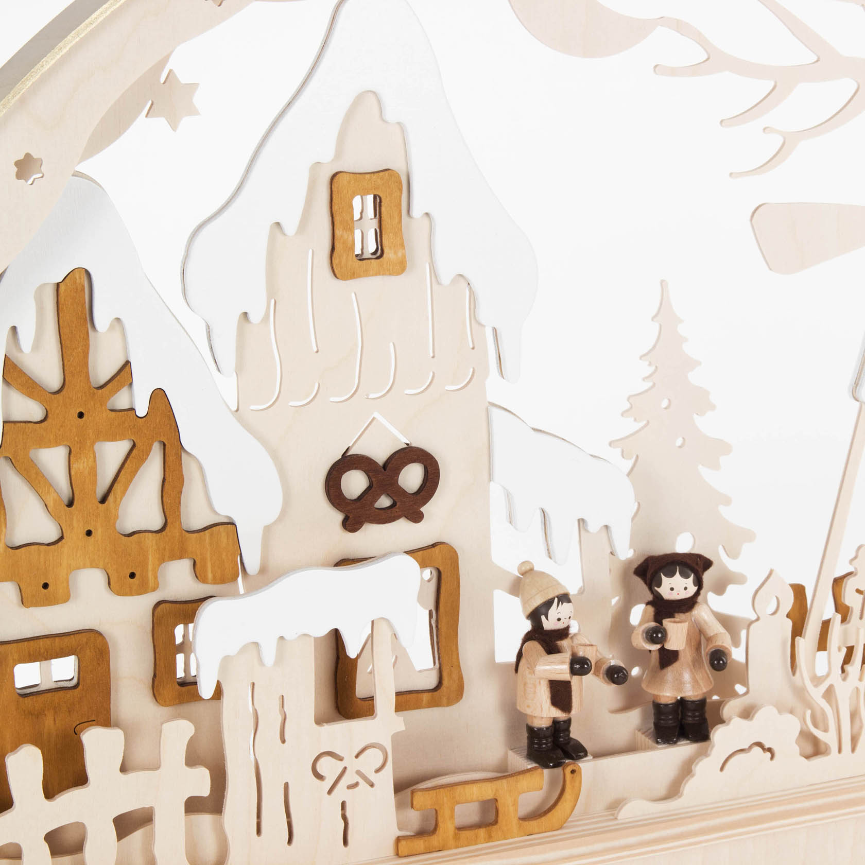 Schwibbogen mit Weihnachtsmarkt, elektrisch beleuchtet 47x78cm