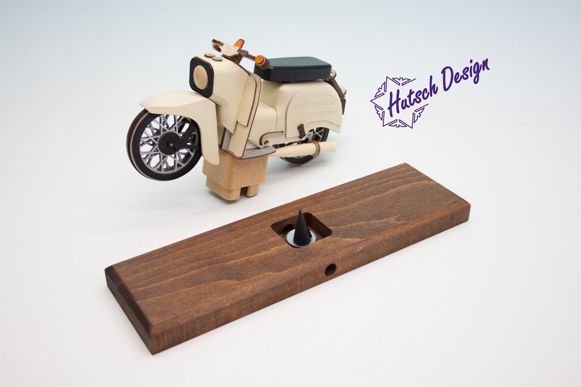 Passend dazu auch der Bilderrahmen. Moped vorn aufstecken und dahinter ein eigenes DIN A 4 Bild seitlich reinschieben. Art.nr.: 01-82-11