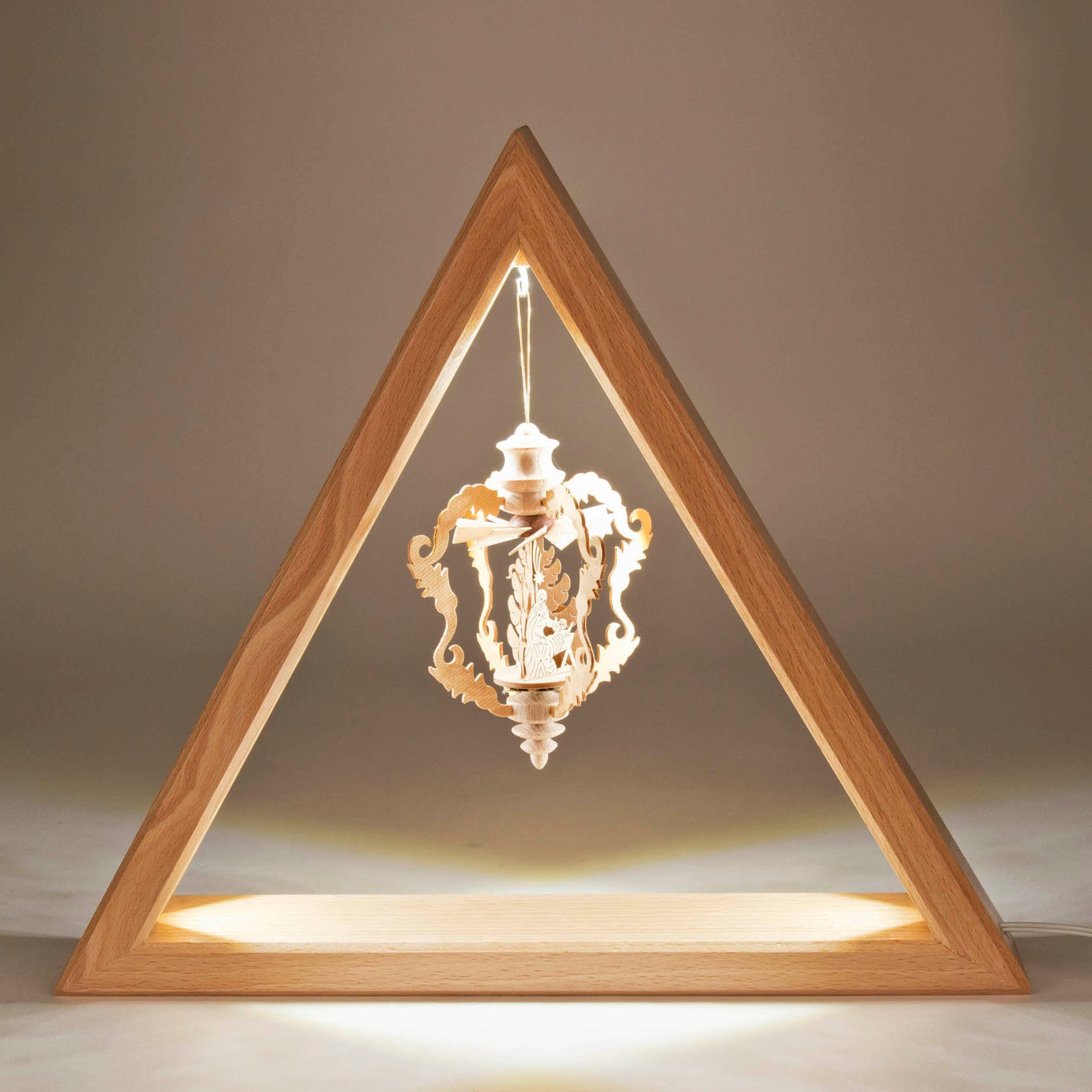 Das Fachgeschäft Volkskunst aus Seiffen präsentiert den Artikel Beleuchtetes Dreieck natur 30cm mit LED Band 12V/Trafo 100-240V 26x30cm 30x35cm der Marke Dregeno