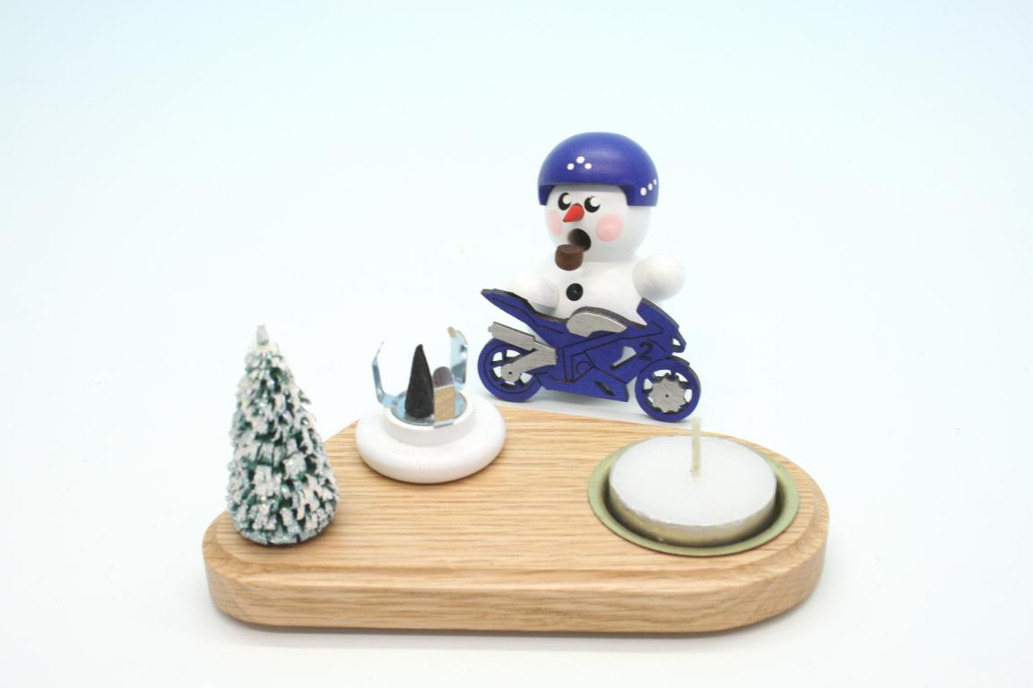 Kerzenhalter Biker weiß mit blauem Bike & Schild 8cm