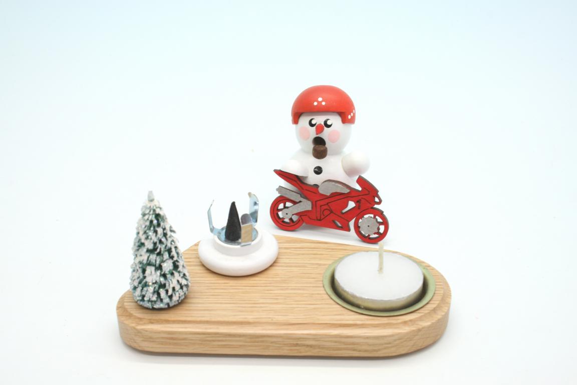 Kerzenhalter Biker weiß mit rotem Bike & Schild 8cm