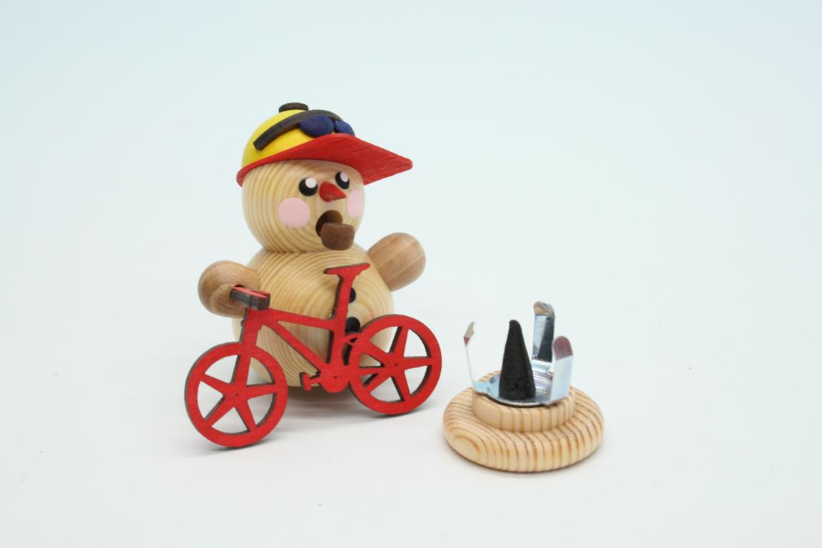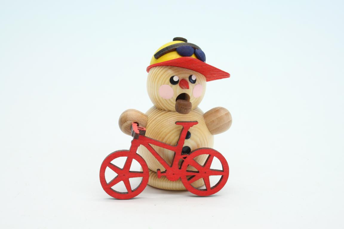 Das Fachgeschäft Volkskunst aus Seiffen präsentiert den Artikel Mountainbiker natur mit rotem Bike 8cm der Marke Gerd Hofmann Kunstgewerbe