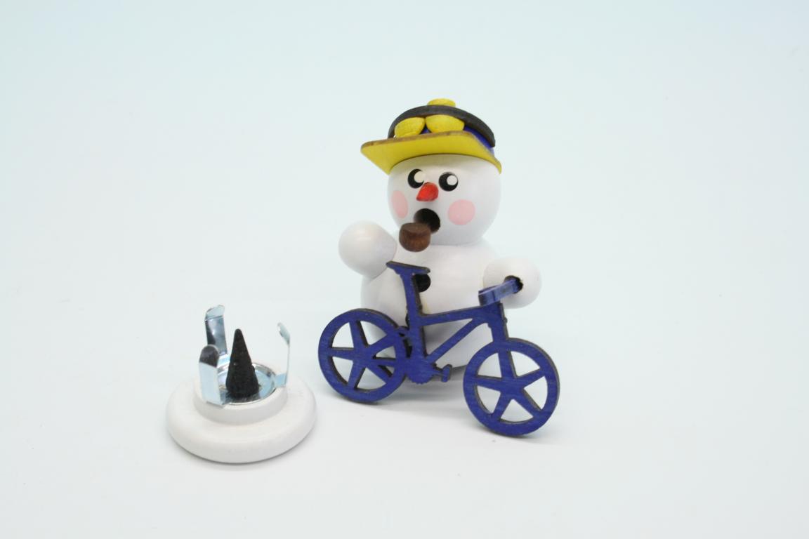Das Fachgeschäft Volkskunst aus Seiffen präsentiert den Artikel Mountainbiker weiss mit blauem Bike 8cm der Marke Gerd Hofmann Kunstgewerbe