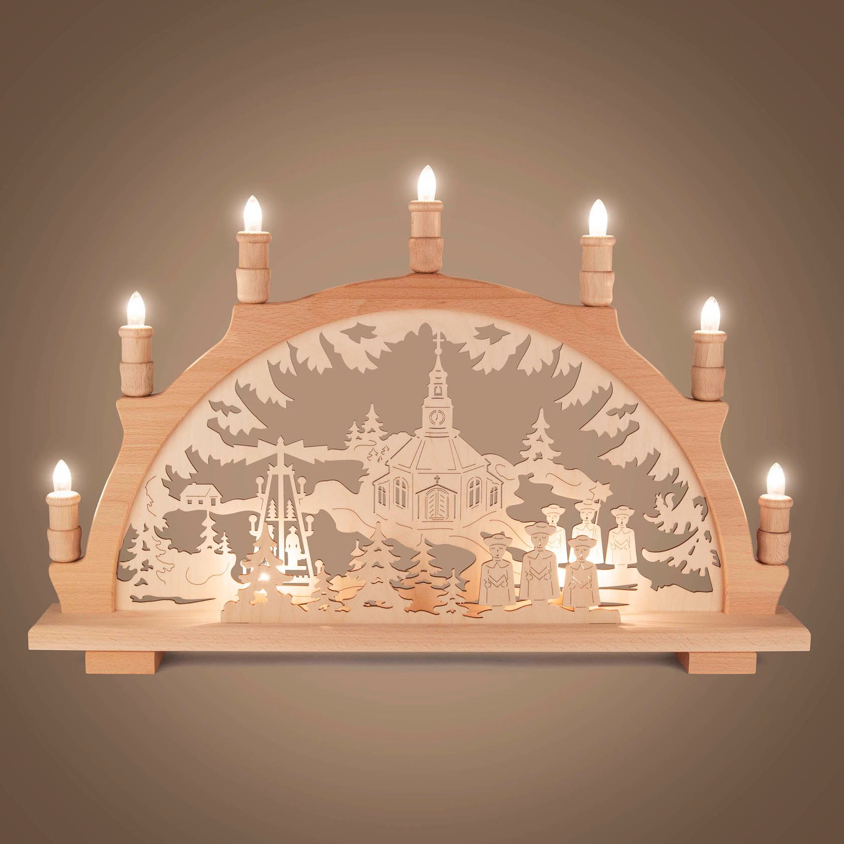 Schwibbogen mit Seiffener Kirche elektrisch beleuchtet 38x57cm