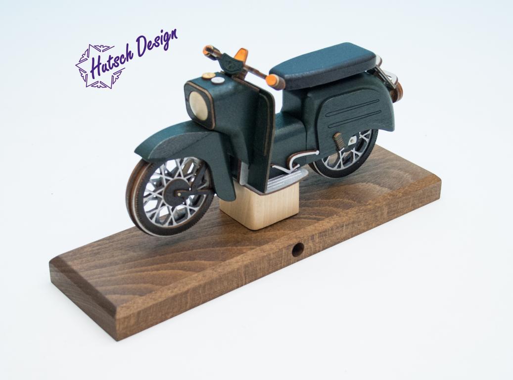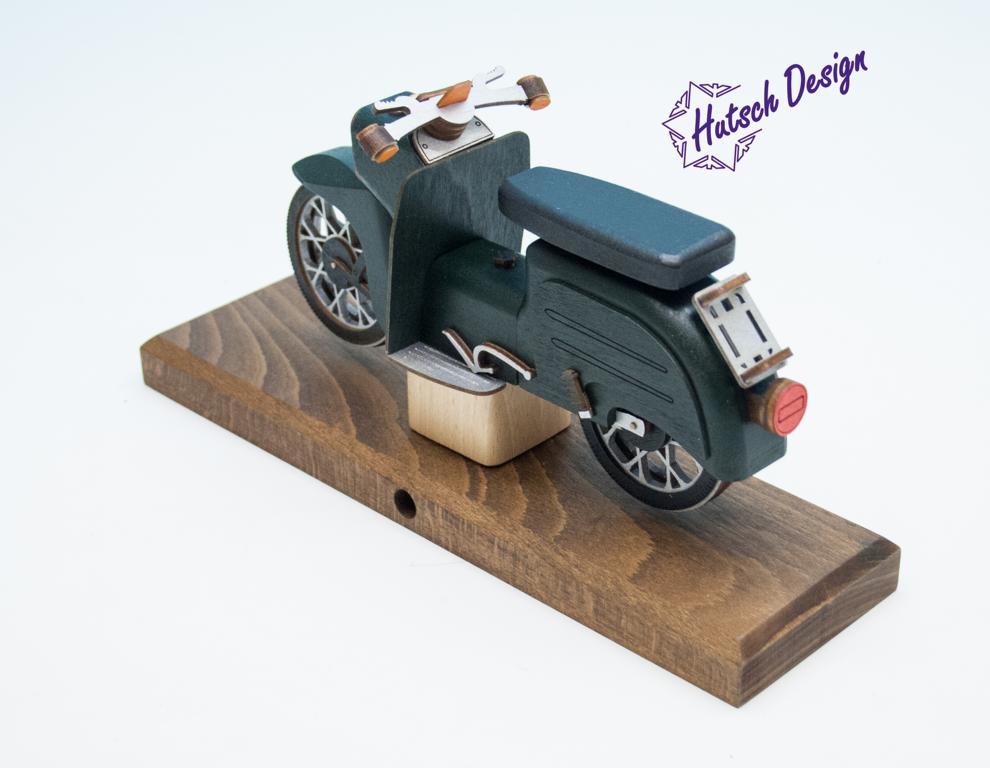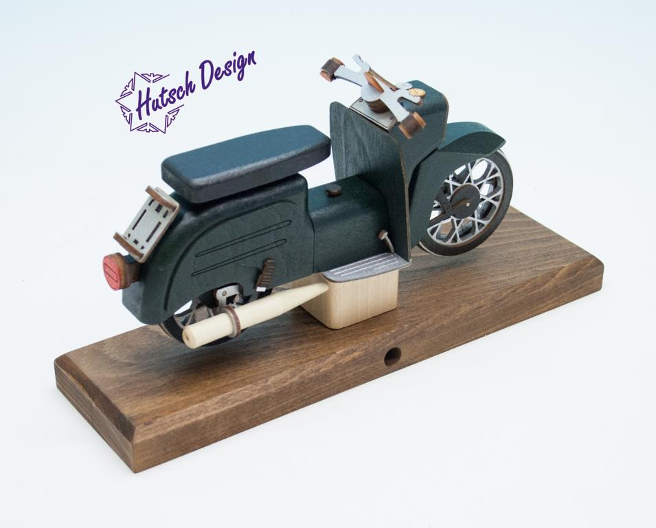 Produktinformationen "Tannengrüne Schwalbe Räuchermoped Simson 28x8x14,5cm"