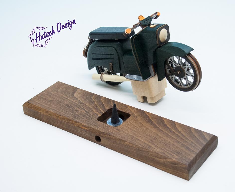 Hergestellt in der kleinsten Zweiradschmiede Sachsens mitten im Herzen des Erzgebirges, im Spielzeugdorf Seiffen. Auf dem Holzweg Richtung Highway? .... nun..., lassen wir es doch auf einen Versuch ankommen! Um Bikerträume ins Wohnzimmer zu holen, sollte man das traditionelle erzgebirgische Kunstgewerbe nicht gleich vergessen aber auch ein gewisses Maß an verrückter Kreativität besitzen.