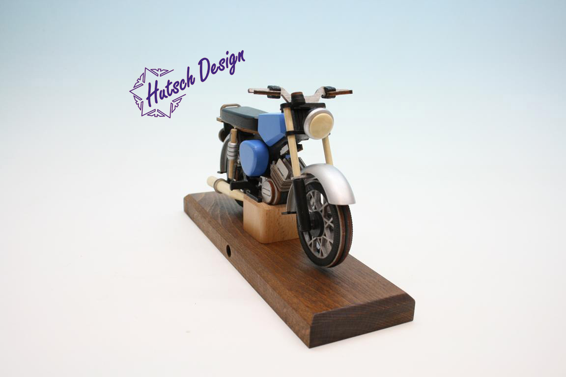 Hergestellt in der kleinsten Zweiradschmiede Sachsens mitten im Herzen des Erzgebirges, im Spielzeugdorf Seiffen. Auf dem Holzweg Richtung Highway? .... nun..., lassen wir es doch auf einen Versuch ankommen! Um Bikerträume ins Wohnzimmer zu holen, sollte man das traditionelle erzgebirgische Kunstgewerbe nicht gleich vergessen aber auch ein gewisses Maß an verrückter Kreativität besitzen.